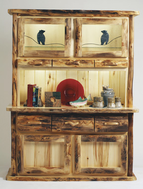 Our signature large log furniture buffet and hutch combination will make a statement in your dining room while providing copious amounts of storage for all your dishes and serving pieces. Or, make use of tighter spaces with our elegant one-piece log furniture corner hutch.